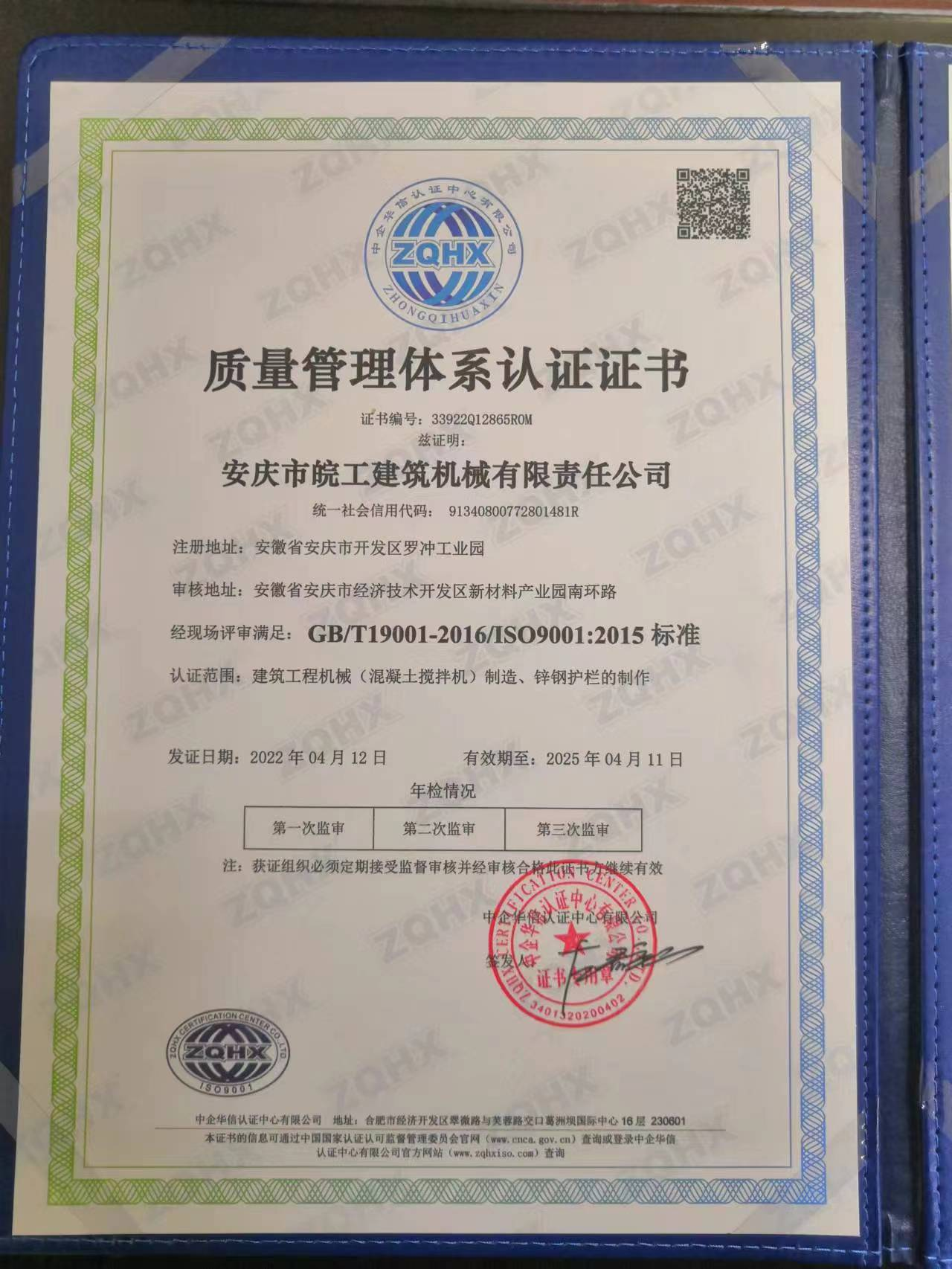 質量管理體系認證證書中文版2022年